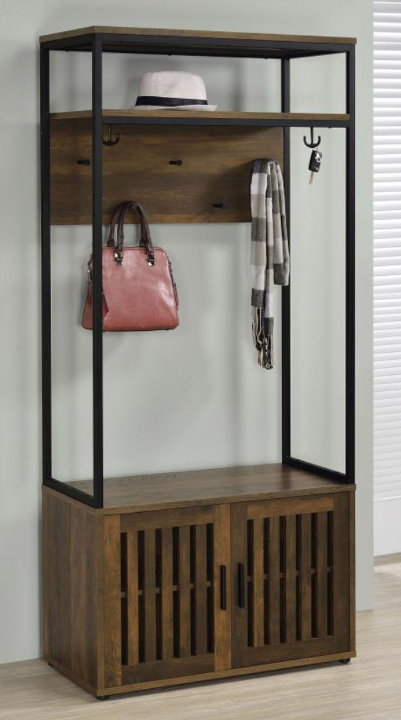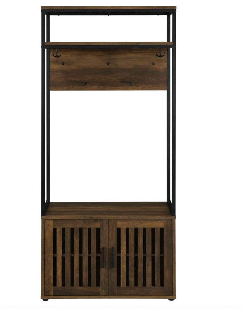Rich dark pine wood and a black metal frame, a fantastic storage solution.